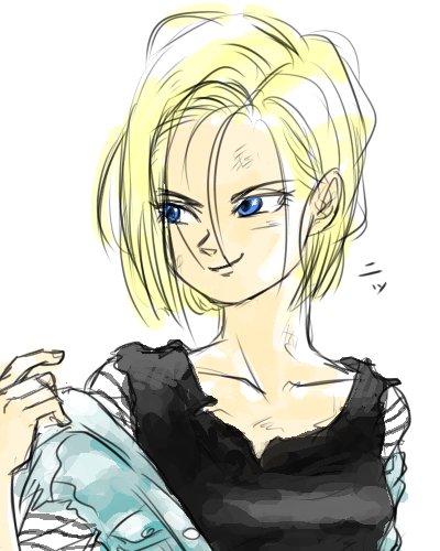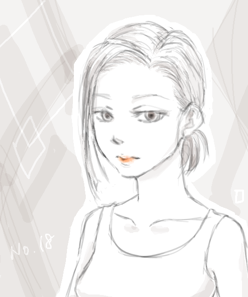 何も考えずに筆を走らせてると、アンニュイな感じの18号になりました。